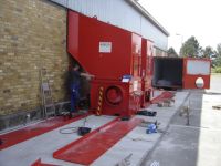 Además del compactador se montan todas los accesorios como embudos, carriles de centrado y posibles componentes adicionales como dispositivos volteadores de elevación o trituradoras de cartonaje.